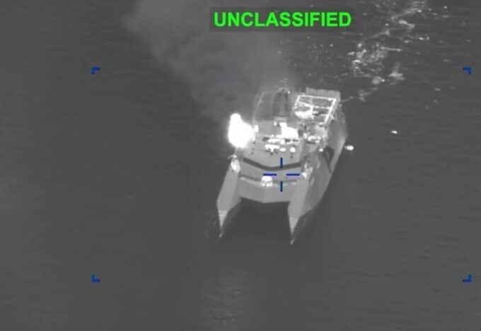 أظهرت مقاطع فيديو متداولة غرق ناقلة النفط سكاي لايت في مياه مضيق هرمز، عقب تعرضها لهجوم بطائرة مسيرة، في حادث…