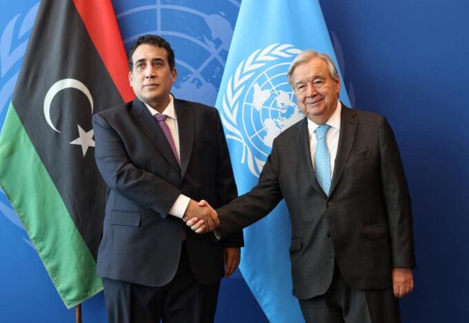 أجرى رئيس المجلس الرئاسي، “محمد المنفي”، اليوم الجمعة، لقاءً رسمياً مع الأمين العام للأمم المتحدة، “أنطونيو غوتيريش”، في مقر المنظمة…