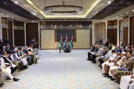 التقى رئيس حكومة الوحدة الوطنية عبد الحميد الدبيبة اليوم الثلاثاء، بمجمع قاعات غابة النصر في طرابلس مجلس حكماء وأعيان وعميد…