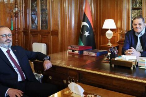 استقبل رئيس حكومة الوحدة الوطنية عبد الحميد الدبيبة، الخميس، سفير جمهورية تشاد لدى ليبيا، المفوض فوق العادة طاهر إيسو يوسف،…