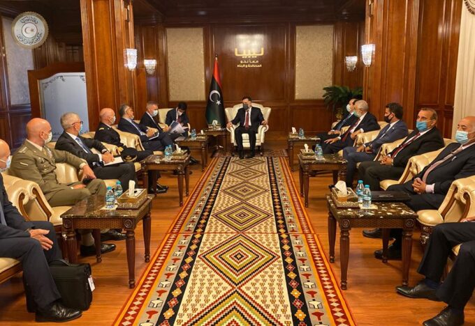 استقبل رئيس المجلس الرئاسي لحكومة الوفاق الوطني “فائز السراج”، صباح اليوم الأربعاء، بمقر المجلس بمدينة طرابلس وزير الدفاع الإيطالي السيد “لورينزو غويريني”.
