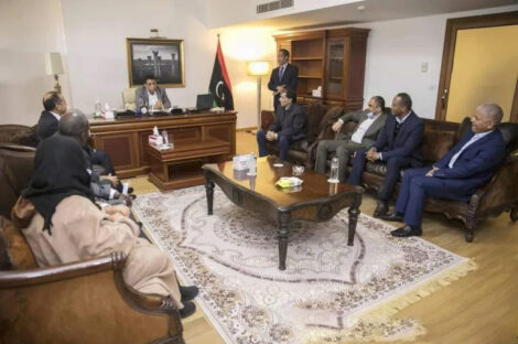استقبل رئيس حكومة الوحدة الوطنية عبد الحميد الدبيبة، اليوم الأربعاء، في العاصمة طرابلس، وفداً من أعيان ومشائخ المنطقة الشرقية.