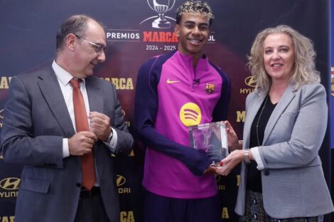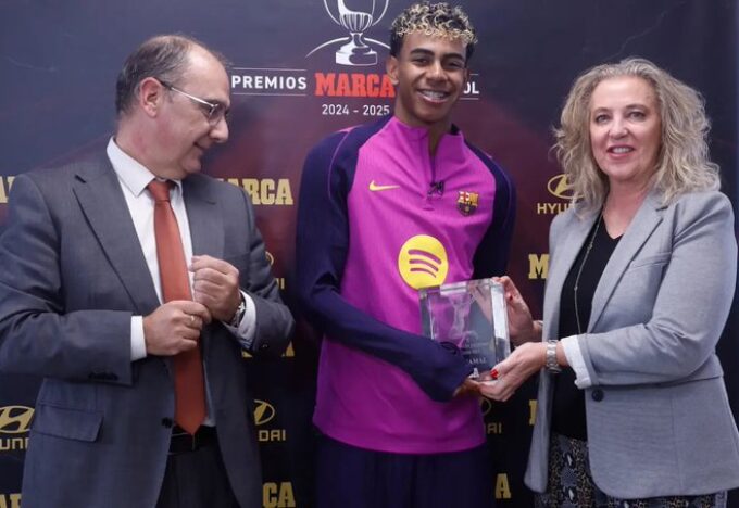 فاز نجم برشلونة، لامين جمال، بجائزة ألفريدو دي ستيفانو المقدمة من صحيفة ماركا الإسبانية لأفضل لاعب في الدوري الإسباني هذا…