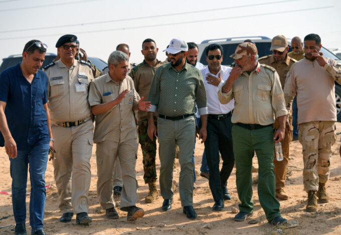 رئيس الحكومة الليبية أسامة حماد يتفقد أوضاع المواطنين المتضررين في المنطقة الممتدة بين إجدابيا والزويتينة جراء انفجار أحد خطوط النهر الصناعي.