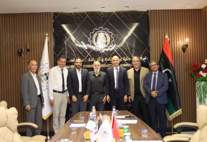 بحث رئيس لجنة إدارة غرفة التجارة والصناعة والزراعة طرابلس فرج دريبيل، مع القائم بأعمال السفارة المصرية في ليبيا تامر مصطفى،…