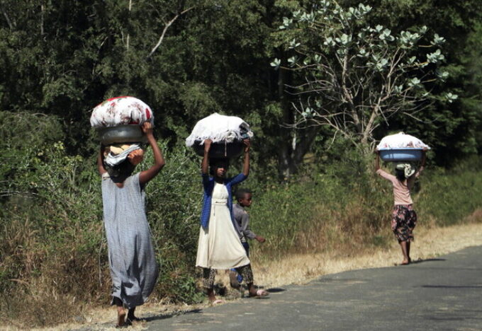 إثيوبيون فارون من الحرب في منطقة تيغراي بشمال البلاد عبرو نهرا حدوديا إلى السودان المجاور اليوم السبت، بعضهم في قوارب…