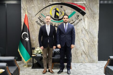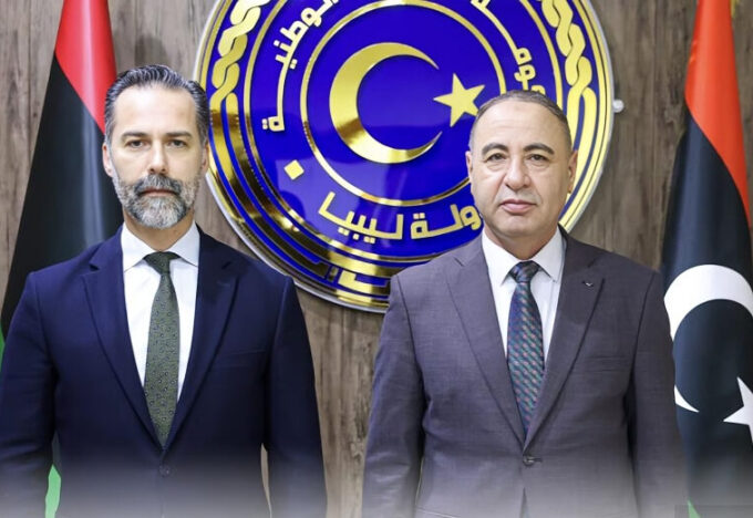 عقد محمد الشهوبي، وزير المواصلات والمستشار المالي لرئيس حكومة الوحدة الوطنية، رفقة محمد الحويج، وزير الاقتصاد والتجارة، وسفير ليبيا لدى…