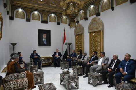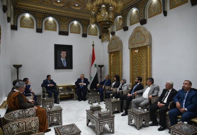 بحث وفد مجلس النواب برئاسة رئيس لجنة الشؤون الخارجية والتعاون الدولي بالمجلس يوسف العقوري، مع رئيس مجلس الشعب السوري حموده…