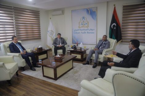 تابع رئيس ديوان المحاسبة الليبي خالد شكشك، خلال اجتماع مع وزير المالية بحكومة الوحدة الوطنية خالد المبروك، بمقر الديوان في…
