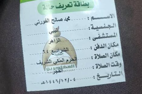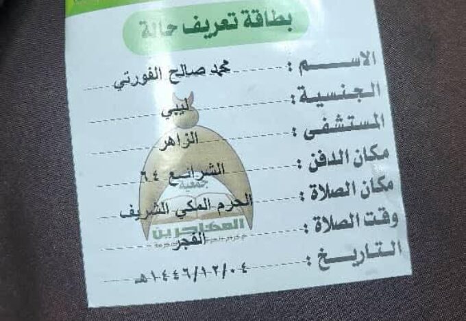 أعلنت الهيئة العامة لشؤون الحج والعمرة في ليبيا، عن وفاة الحاج محمد صالح الفورتي، أحد حجاج منطقة طرابلس الكبرى، والذي…
