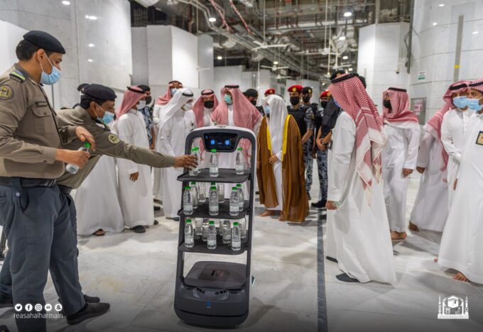 دشن الرئيس العام لشؤون المسجد الحرام والمسجد النبوي في السعودية، عبد الرحمن بن عبد العزيز السديس، الروبوت الذكي لتوزيع عبوات…
